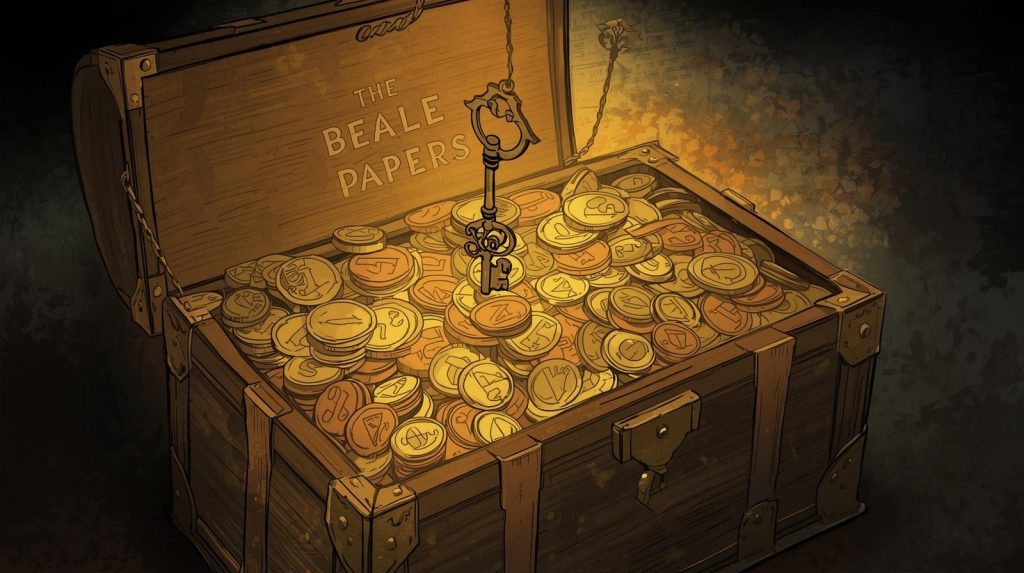 Em 1885, um pequeno panfleto intitulado “The Beale Papers” foi publicado em Lynchburg, Virgínia, nos Estados Unidos. O autor, James B. Ward, apresentava ao mundo uma história extraordinária: a existência de um tesouro fabuloso composto por ouro, prata e joias, avaliado na época em mais de US$ 60 milhões em valores atuais, enterrado em algum lugar do condado de Bedford, no estado da Virgínia . Junto com a história, o panfleto trazia três páginas repletas de números — os famosos “Documentos de Beale”, as criptografias que supostamente levariam ao tesouro .