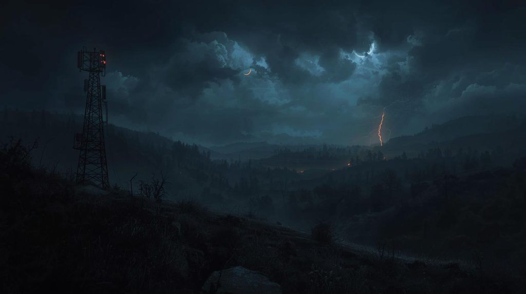 A escuridão hesitou. Por um segundo, pareceu recuar. O rádio captou a melodia e a amplificou, distorcida, para o vale.